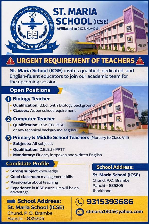 We hold that every child is endowed with certain unique gifts of God. Just as a flower bud blossoms with the warmth of the sun, the mystery of human life unfolds in them through support and care. At St, Maria School, We inspire the students with a passion for learning, a sense of social responsibility and commitment to personal integrity. The more we live, the more we learn. The more we learn, the more we realize that the less we know.